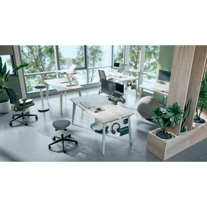 Ľahká a mobilná stolička s 5 kolieskami pre ľahké otáčanie o 360 °. Kolieska sú navrhnuté s ohľadom na bezpečnosť, pri zdvihnutí sa zo stoličky sa uzamknú, pri sedení odomknú, zabraňujú tak nechcenému pohybu. Sú vhodné pre všetky typy podláh v kancelárii aj doma.