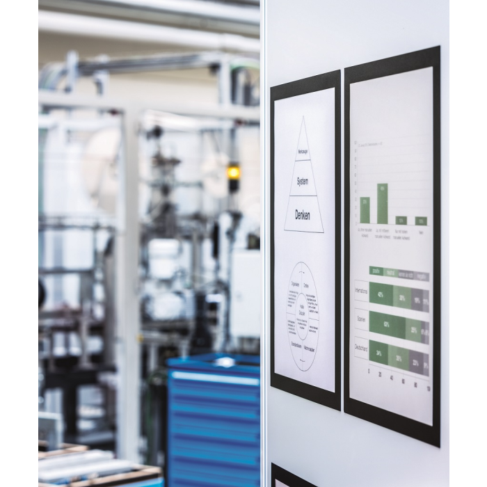 Informačný panel s magnetickou časťou na zadnej strane rámika na jednoduché a rýchle vkladanie informácie formátu A3. Vhodný na hladké magnetické povrchy, napr. magnetickú tabuľu. Výber z 5 farieb rámika. Farba čierna. Balenie 5 kusov.