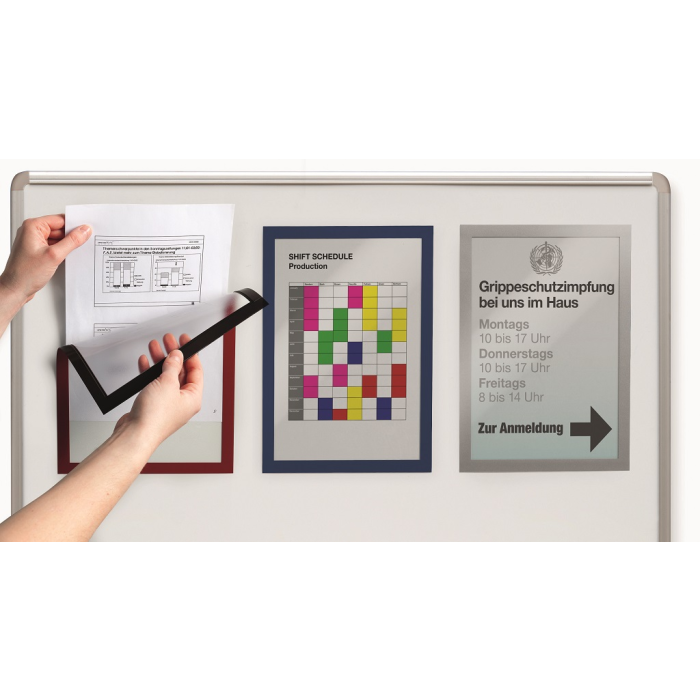 Informačný panel s magnetickou časťou na zadnej strane rámika na jednoduché a rýchle vkladanie informácie formátu A4. Vhodný na hladké magnetické povrchy, napr. magnetickú tabuľu. Farba modrá. V balení 5 ks.