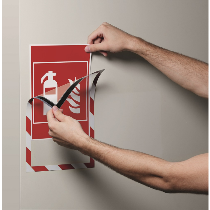 Bezpečnostný panel s magnetickou časťou na zadnej strane rámika na jednoduché a rýchle vkladanie informácie formátu A4. Vhodný na hladké magnetické povrchy, napr. magnetickú tabuľu. Farba červeno-biela. Balenie 5 kusov.