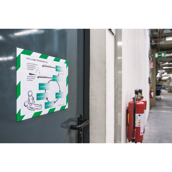 Bezpečnostný panel s magnetickou časťou na zadnej strane rámika na jednoduché a rýchle vkladanie informácie formátu A4. Vhodný na hladké magnetické povrchy, napr. magnetickú tabuľu. Farba zeleno-biela. Balenie 5 kusov.