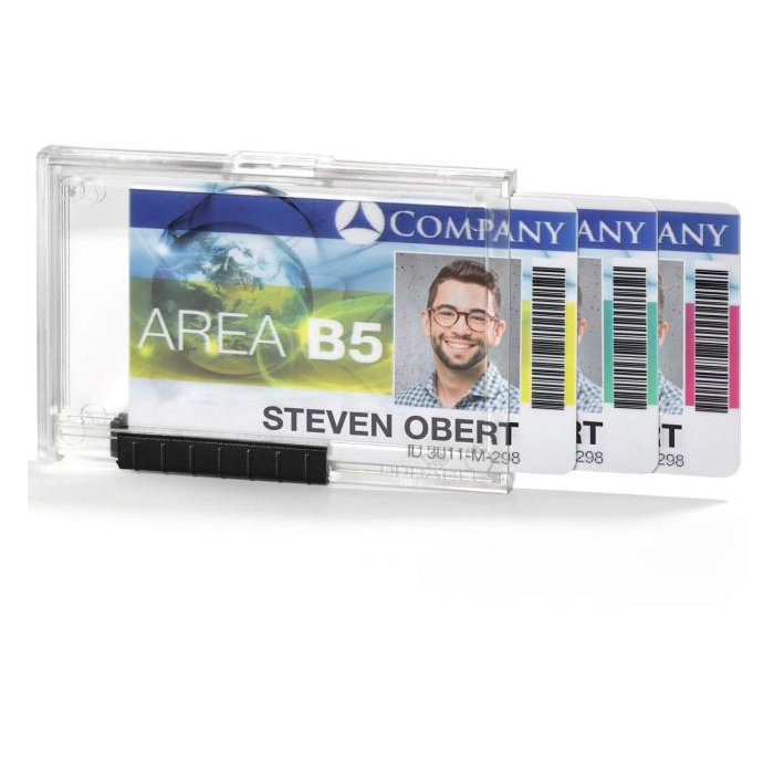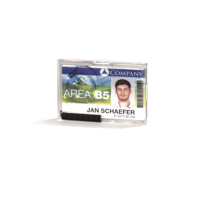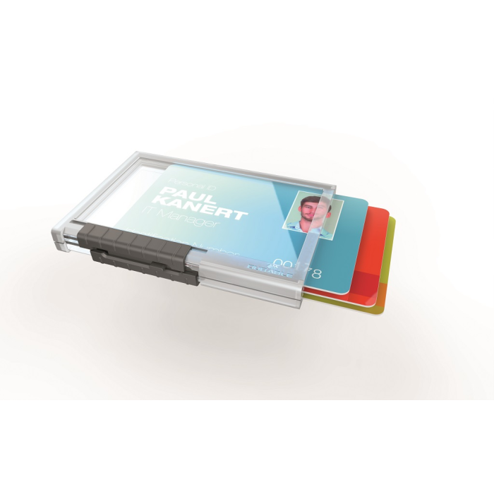 Puzdro z priehľadného plastu vysokej kvality na 3 karty. Je možné použiť na výšku aj na šírku. Farba priehľadná. S posuvníkom pre šetrné vybratie karty. Upevňovací držiak odolný proti rozbitiu napr. pre klip, textilný pásik alebo jojo s puzdrom na preukaz. Vnútorné rozmery: 54×87 mm (vך)