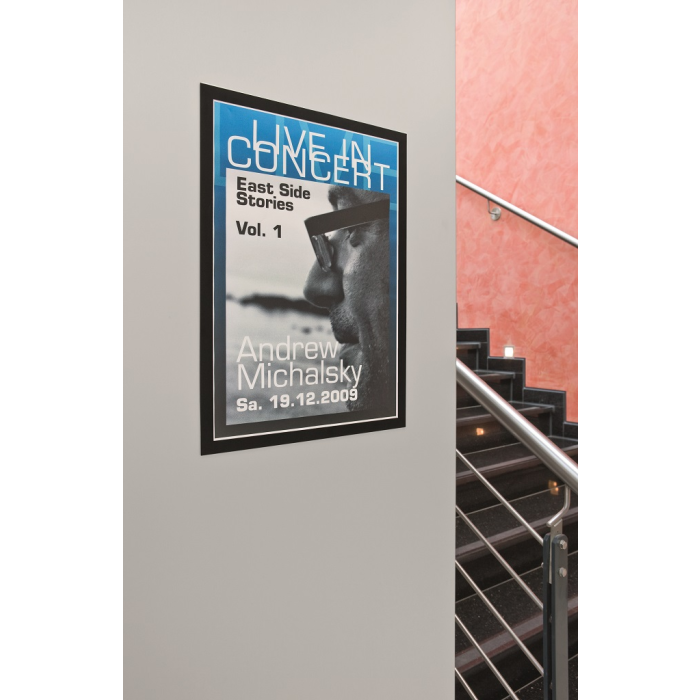 Samolepiaci informačný panel s prednou magnetickou časťou. Ideálny na vystavovanie plagátov, kľúčových informácií, špeciálnych oznamov alebo dôležitých čísel. Informácie sa ľahko vymieňajú a sú čitateľné z oboch strán, ak sa panel umiestni napr. na okno alebo priehľadné dvere. Vhodný na hladké a pevné povrchy. V prípade potreby je ľahko premiestniteľný bez potreby vŕtania. Formát A3, rámik čierny.