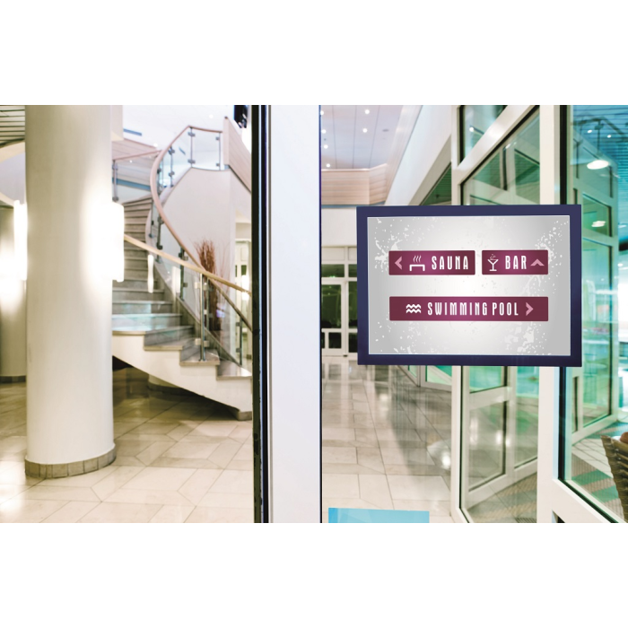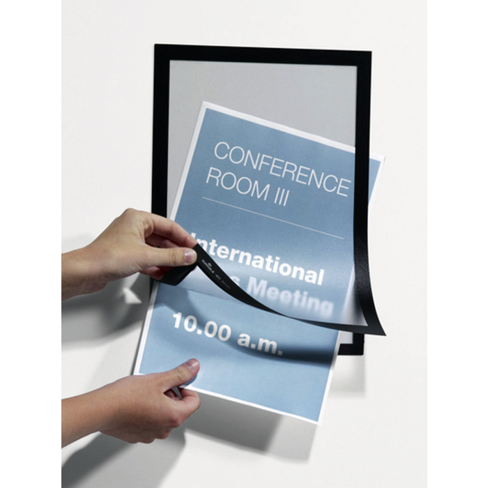 Samolepiaci informačný panel s prednou magnetickou časťou. Ideálny na vystavovanie plagátov, kľúčových informácií, špeciálnych oznamov alebo dôležitých čísel. Informácie sa ľahko vymieňajú a sú čitateľné z oboch strán, ak sa panel umiestni napr. na okno alebo priehľadné dvere. Vhodný na hladké a pevné povrchy. V prípade potreby je ľahko premiestniteľný bez potreby vŕtania. Formát A4, rámik modrý.