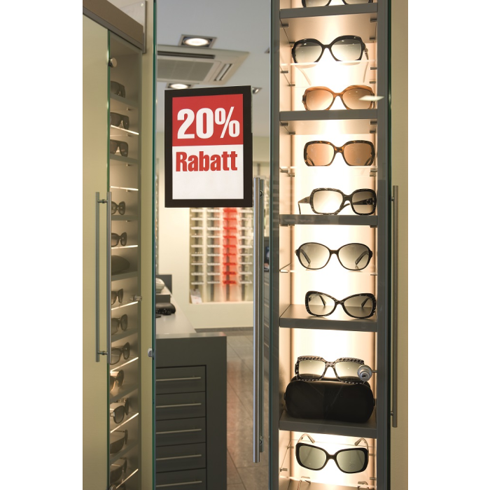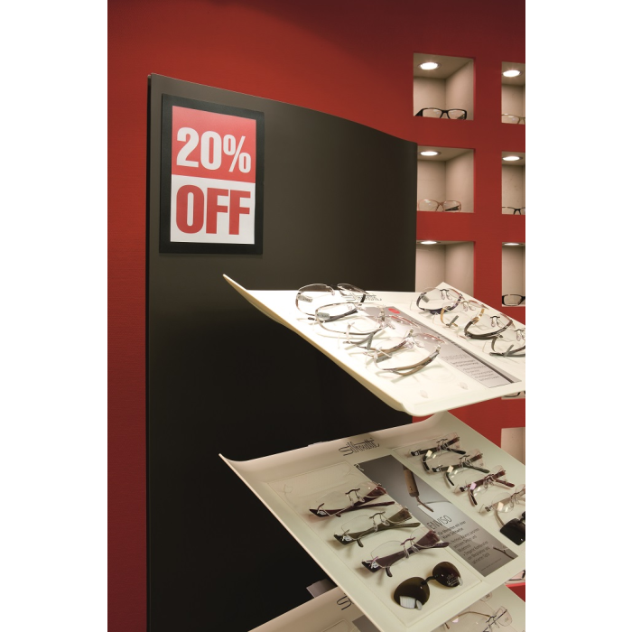 Samolepiaci informačný panel s prednou magnetickou časťou. Ideálny na vystavovanie kľúčových informácií, špeciálnych oznamov alebo dôležitých čísel. Informácie sa ľahko vymieňajú a sú čitateľné z oboch strán, ak sa panel umiestni napr. na okno alebo priehľadné dvere. Vhodný na hladké a pevné povrchy. V prípade potreby je ľahko premiestniteľný bez potreby vŕtania. Formát A5, farba rámu čierna. V balení 2 ks.