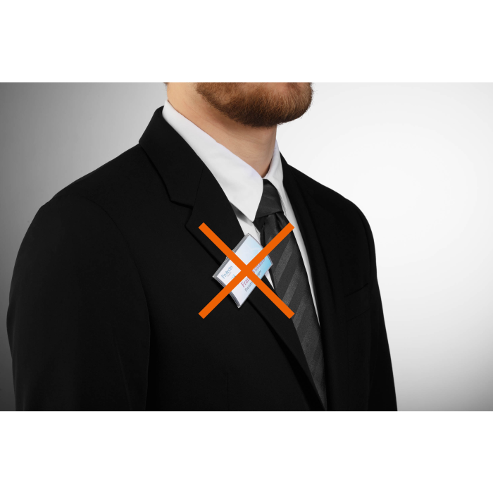 • Konvexná jednodielna menovka vyrobená z PP so špeciálnym magnetickým zapínaním, ktoré zabraňuje skrúteniu, skĺznutiu alebo uvoľneniu menovky pri nosení