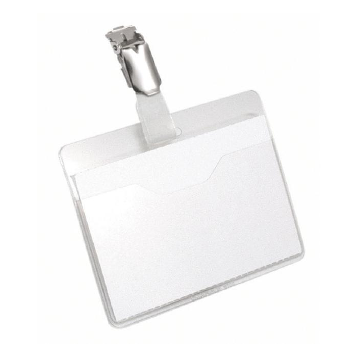 Priehľadná visačka s európskym štipcom, umiestneným na dlhšej strane visačky. Dodávaná s papierovou kartičkou rozmerov 90×60 mm. Model, pri ktorom možno menovku vyberať bez potreby odnímania štipca s remienkom. Balenie 25 ks. Farba transparentná. Rozmery: 90 x 60 mm