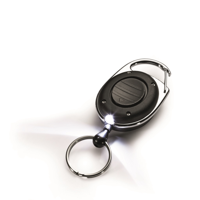 Štýlový kotúč s oválnym plastovým telom a kovovým klipom s kľúčovým krúžkom a Led svetlom na orientáciu v tme. Vysunutie kotúča do dĺžky 80 cm. Vhodný na uchytenie všetkých visačiek značky DURABLE s perforáciou.