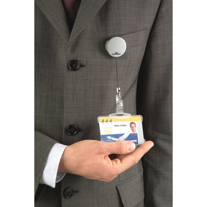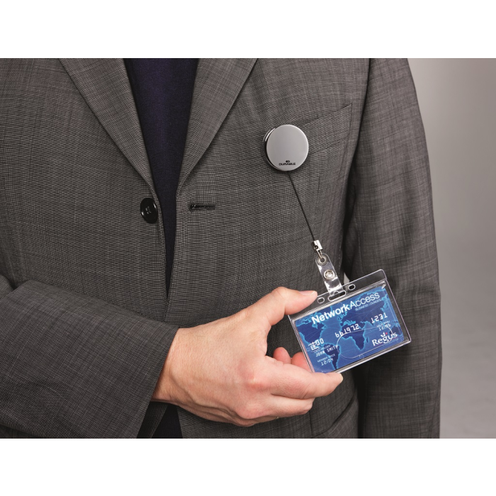 Vysúvací kotúč s možnosťou vysunutia do 80 cm. Vhodný na uchytenie všetkých visačiek značky DURABLE s perforáciou. Priemer kotúča 40 mm. Balenie 10 ks. Farba: strieborná